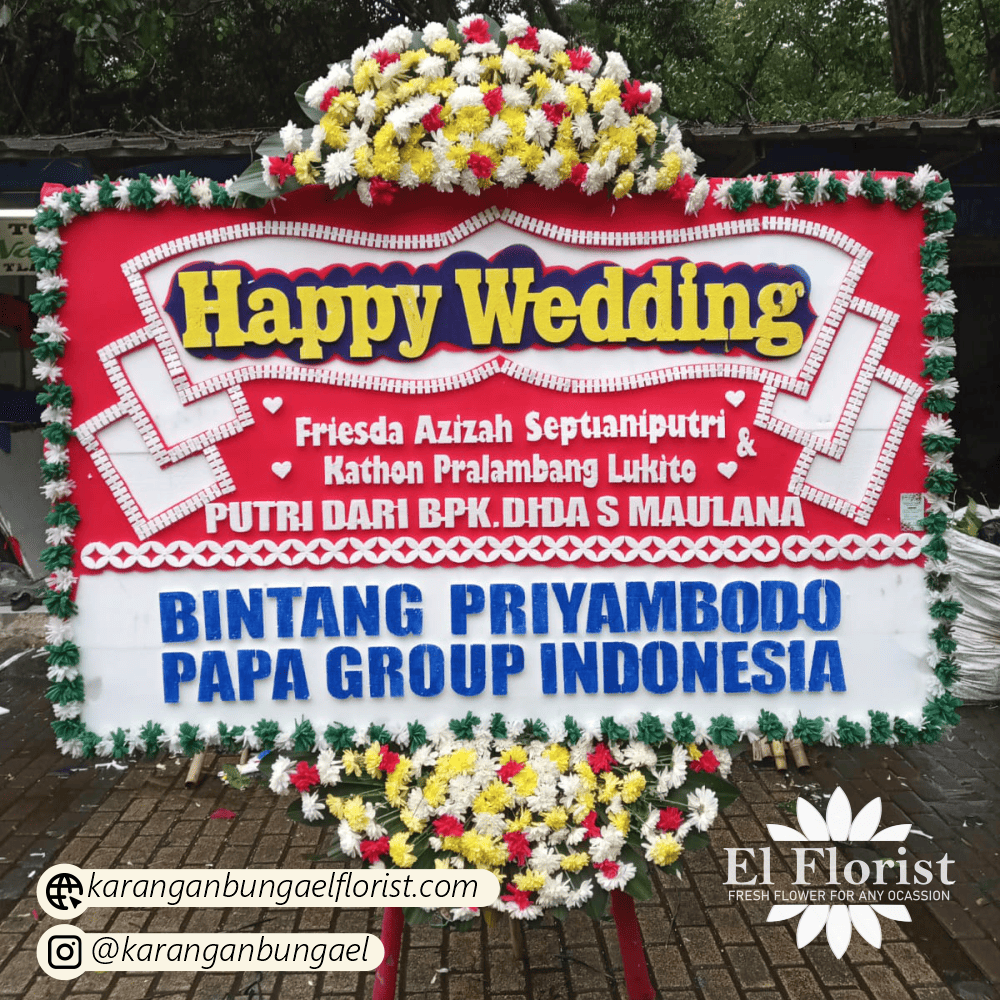 Rayakan momen paling sakral dengan Karangan Bunga Happy Wedding eksklusif dari Elflorist. Dirancang khusus untuk menyampaikan doa restu dan kebahagiaan yang mendalam.