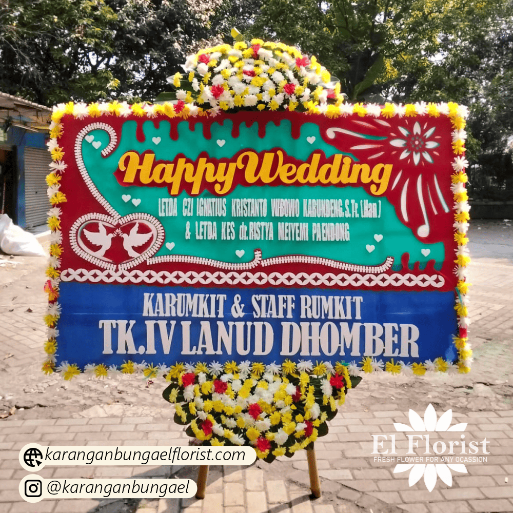 Rayakan momen paling sakral dengan Karangan Bunga Happy Wedding eksklusif dari Elflorist. Dirancang khusus untuk menyampaikan doa restu dan kebahagiaan yang mendalam.